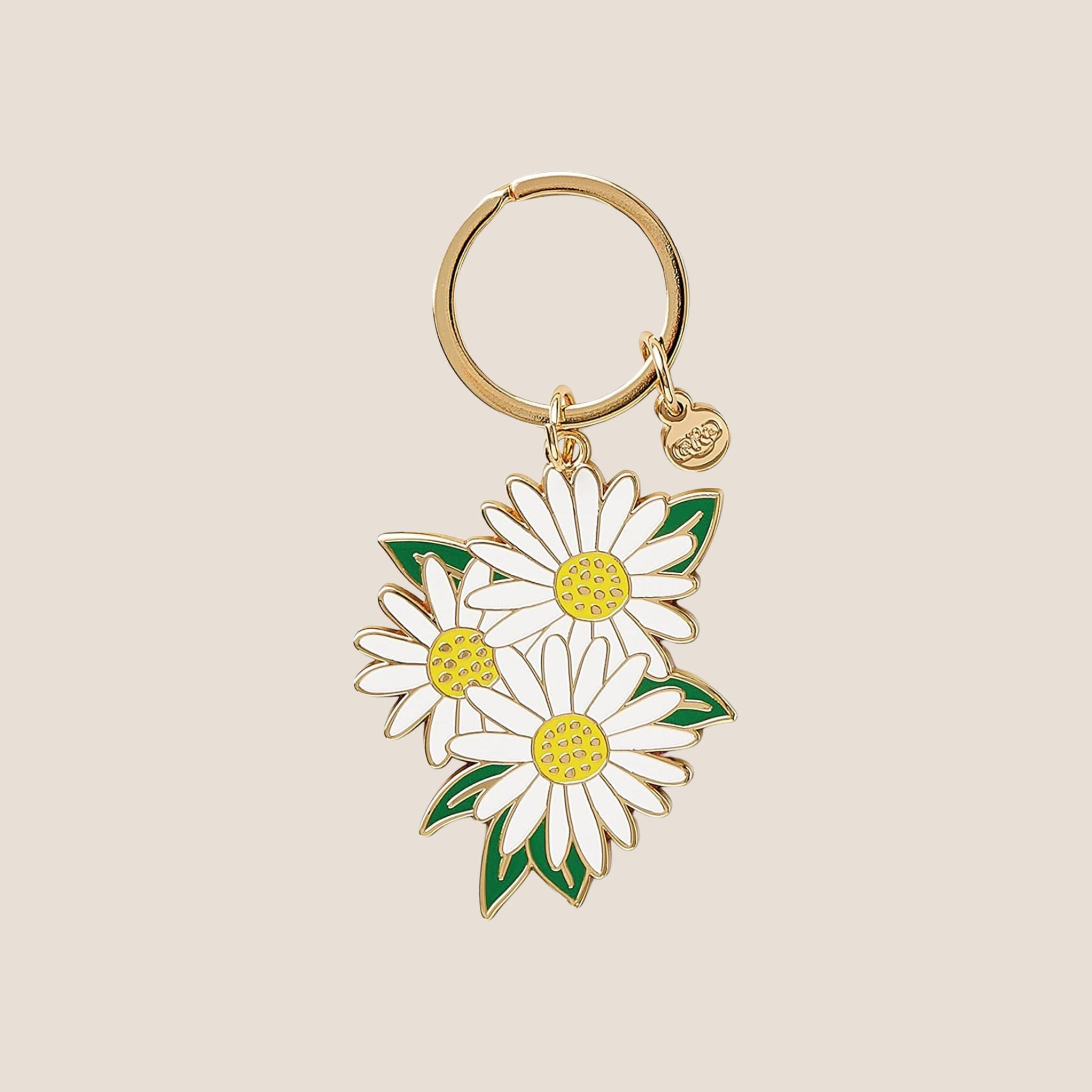 Never leave home without a bouquet of the friendliest flower with the enamel Daisies keychain, featuring a glossy finish and a Rifle Paper Co. charm. DETAILS - 2.4" L × 1.75" W - Zinc alloy with stainless iron keyring - Printed in full color - 1" keyring - Polished enamel with glossy finish.