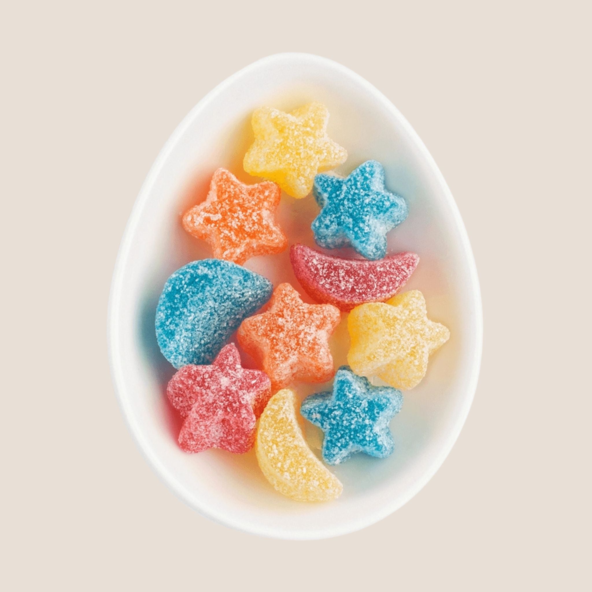 Made with real fruit juice, these sweet and tart gummies have a taste that's totally out of this world. Experience a flavor explosion with every bite! Bursting with real fruit juice, these Heavenly Sours offer a perfectly balanced combination of sweetness and tartness. Indulge in a heavenly treat that will awaken your taste buds and leave you craving more. Don't miss out on this delicious and unique snacking experience!