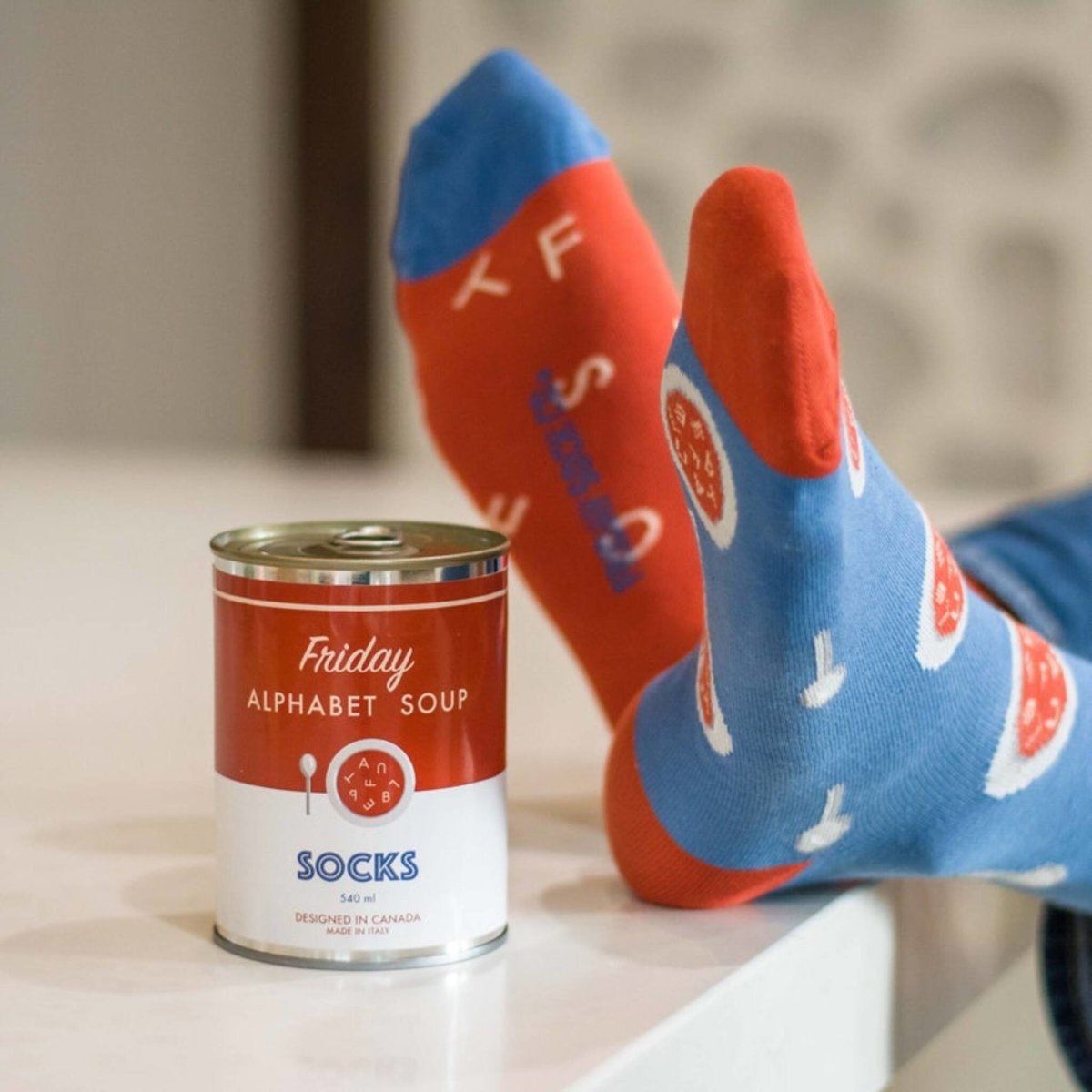 Keep the spirit of your favorite childhood comfort foods alive with these hilarious Alphabet Soup Mismatched Socks.